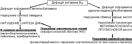 б) нарушение его всасывания при недостатке внутреннего фактора Касла (на уровне желудка), поражении дистальных отделов ileum, конкурентном поглощении витамина В12 при дифиллоботриозе, применении некоторых лекарственных средств (аминосалициловая кислота, неомицин)