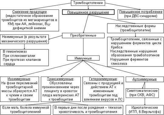 Тромбоцитопеническая пурпура – группа заболеваний, объединяемых по принципу единого патогенеза тромбоцитопении (укорочение продолжительности жизни тромбоцитов, обусловленное действием АТ к ним или другими механизмами их разрушения).