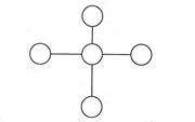 3. Сеть-колесо централизует коммуникации и дает большую власть лицу, находящемуся в ее центре. Все коммуникации проходят через центр, и только центр передает информацию другим узлам сети.