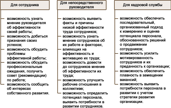 Оценка работников осуществляется для принятия решений по их поощрению или санкциям – это определение личного вклада работника в общий результат и степень его влияния на достижение этого результата, определение профессионально-квалификационного уровня работника.