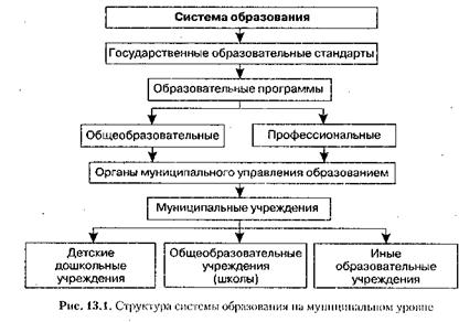 На территории муниципального образования (города) могут располагаться образовательные учреждения различного профиля и форм собственности. По формам собственности образовательные учреждения бывают муниципальными, государственными, ведомственными и частными. По профилю они делятся: