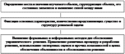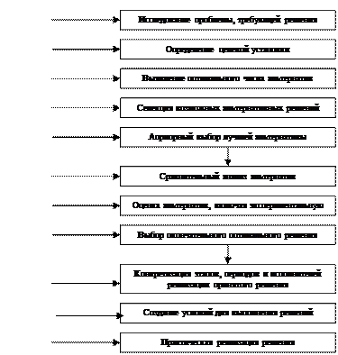 Упорядочение процесса подготовки, принятия и реализации решения в какой-то мере компенсирует недостатки, обусловленные невозможностью решить проблему только с помощью количественных методов анализа на основе использования четких однозначных алгоритмов. Рассмотрение возникающих проблем в четкой последовательности дает возможность плодотворно сочетать формальные и эвристические методы в процессе подготовки и принятия решения и добиваться более высокого его качества.