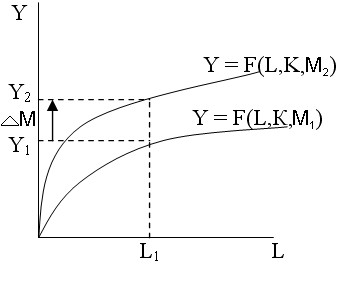 Производственная функция – функция, отображающая зависимость между максимальным объемом производимого продукта и физическим объемом факторов производства при данном уровне технических знаний. Q = f(L,K,M), где Q - максимальный объем продукции, произведенной при данной технологии и определенных факторах производства; L - труд; К - капитал; М – материалы.