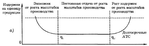 -Если имеет эффект положительный эффект масштаба, то кривая долгосрочных средних издержек имеет значительный отрицательный наклон.