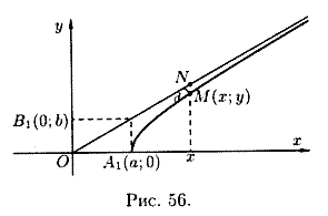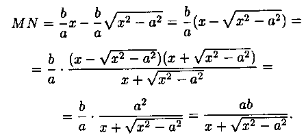 (см.рис. 56), и найдем разность ΜΝ между ординатами прямой и ветви гиперболы: