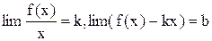 Асимптоты. При исследовании поведения графика функции либо в бесконечности, либо вблизи точек разрыва второго рода часто оказывается, что график приближается к некоторой прямой линии. Другими словами, расстояние между точками графика функции и точками прямой линии, измеренные по вертикали и горизонтали, стремится к нулю. Такие прямые линии – асимптоты графика функции. Бывают вертикальные (точки разрыва 2ого рода), либо наклонные (поведение функции в бесконечности). Горизонтальная асимптота – частный случай наклонной. Непрерывные функции не имеют вертикальных асимптот. Для того, чтобы график функции y=f(x) имел наклонную асимптоту y=kx+b, необходимо и достаточно, чтобы существовали конечные пределы