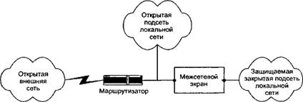 Рис. 9.7. Схема с защищаемой закрытой и не защищаемой открытой подсетями