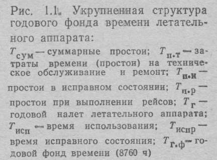 В годовом фонде времени летательного аппарата Тгф значительную долю времени занимают простои Тп.т при технически обслуживании и ремонте, простои Тпи по разным причинам в исправном состоянии, а также простои Тпрз промежуточных и конечных аэропортах при выполнении рейсов (рис. 1.1).