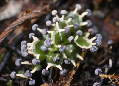 Кстати… размножение плазмодий тоже очень необычное… к моменту готовности гриб выбирается на открытое пространство и собирается в плотный комок, покрытый коркой. Из комка вырастают разноцветные плодовые тела странных разнообразных форм… в них-то и содержатся споры, которые с ветром перенесутся на новое место поселения…