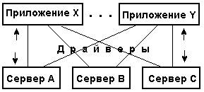Раньше разработчикам клиентских приложений приходилось писать множество драйверов (см. рис. справа) для взаимодействия с каждым из используемых управляющих устройств (контроллеров).