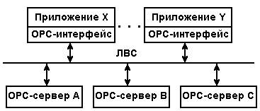 ОРС -взаимодействие основано на клиент-серверной архитектуре. ОРС -клиент (например, SCADA), вызывая определенные функции объекта ОРС -сервера, подписывается на получение определенных данных с определенной частотой. В свою очередь, ОРС -сервер, опросив физическое устройство, вызывает известные функции клиента, уведомляя его о получении данных и передавая сами данные. Таким образом, при ОРС -взаимодействии используются как прямые СОМ -вызовы (от клиента к серверу), так и обратные (от сервера к клиенту).