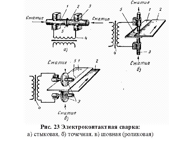 Наиболее широкое применение получили следующие основные виды контактной сварки: стыковая, точечная и шовная (рис.23).