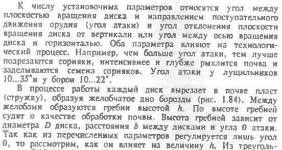 С увеличением угла атаки диски глубже погружаются в почву, крошение ее возрастает. Глубину обработки устанавливают изменением угла атаки и давления дисков на почву. Давление регулируют, изменяя массу балласта в специальных закреплениях на раме бороны.