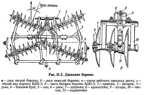 Общее устройство, основные регулировки и геометрические параметры рабочих органов дисковых борон на примере БДН-3.