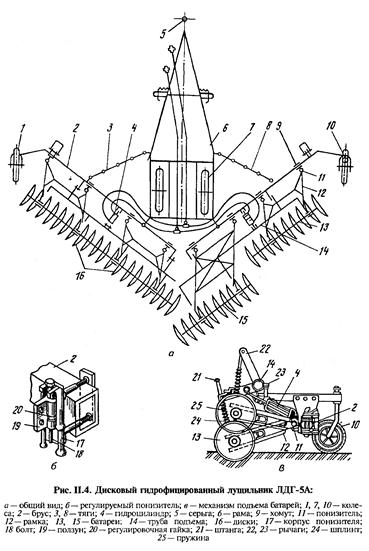 Общее устройство, основные регулировки и геометрические параметры рабочих органов лущильников на примере ЛДГ-5.(Лущильник дисковый гидрофицированный)