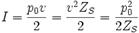 Интенсивность звука может быть выражена через амплитуду звукового давления p0 и колебательную скорость v:
