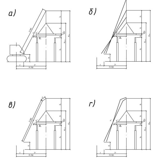 Требуемая длина стрелы lст.тр. определяется по наибольшему из ранее