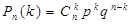 Число этих сложных событий=числу сочетаний из n эл-тов по k Эл-тов. Эти сложные события не совместны, поэтому вер-ть суммы этих событий = сумме их вер-тей, а т.к. все слогаемые равны между собой, то можно одно из них умножить на кол-во: