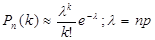 Замечание 2. В том случае, когда n велико, а p мало (р<0,1; npq≤9) вместо формулы Бернулли применяют приближенную формулу Пуассона: