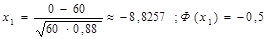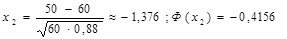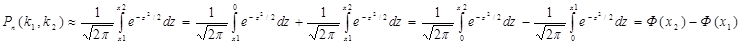 , где х1=(k1-np)/(npq)1/2; x2=(k2-np)/(npq)1/2.