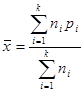 Рассмотрим результаты наблюдений над СВ Х, возможные значения к-рой х1, х2, …, хn. Допустим, что при испытании СВ Х приняла значение =х1 n1 раз, значение х2 n2 раз, …, хk nk раз. Найдем ср.знач. из всех наблюдаемых значений:
