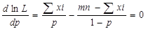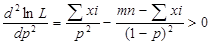 => р= Σхi/nm – точка max=> ее надо принять в кач-ве оценки наиб.правдоподобия неизв.вер-ть р биномиального распределения.