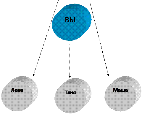 Предположим, ваш наставник зарегистрировали вам в первую линию три новичка, пусть это будут Лена и Таня, Маша