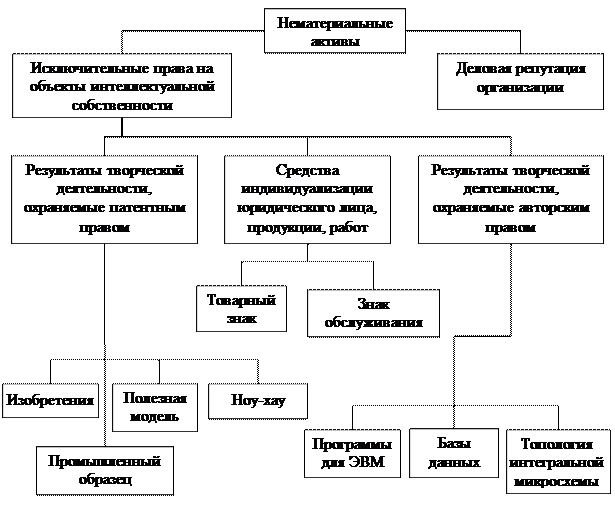 Одной из групп имущества, включаемых в состав внеоборотных активов организации, являются нематериальные активы. Понятие нематериальных активов содержится в четвертой части Гражданского кодекса РФ, вступившей в действие с 1 января 2008 года. В соответствии с ГК РФ, нематериальными активами признаются исключительные права на результаты интеллектуальной деятельности и приравненные к ним средства индивидуализации юридических лиц, товаров, работ, услуг и предприятий, которым предоставляется правовая охрана.