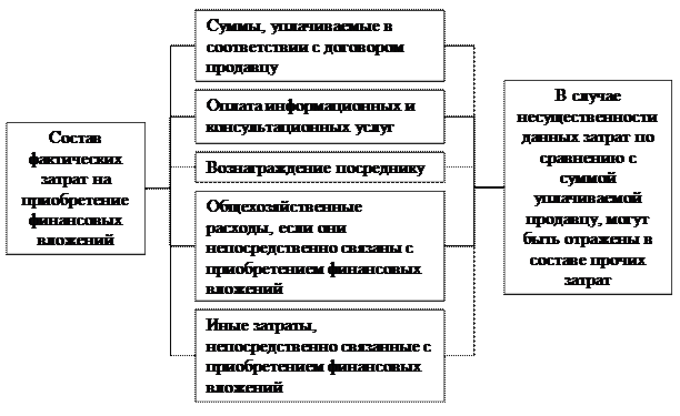 Первоначальной стоимостью финансовых вложений, приобретенных за плату, признается сумма фактических затрат организации на их приобретение (рис.10.2).