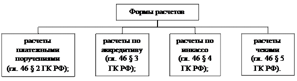 В настоящее время в соответствии с положениями Гражданского кодекса РФ допускается использование следующих форм безналичных расчетов (рис. 11.2.).