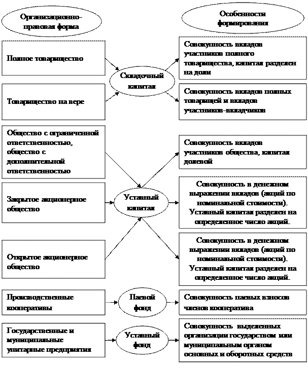 Рис. 13.2. Особенности формирования уставного капитала предприятий различных организационно-правовых форм