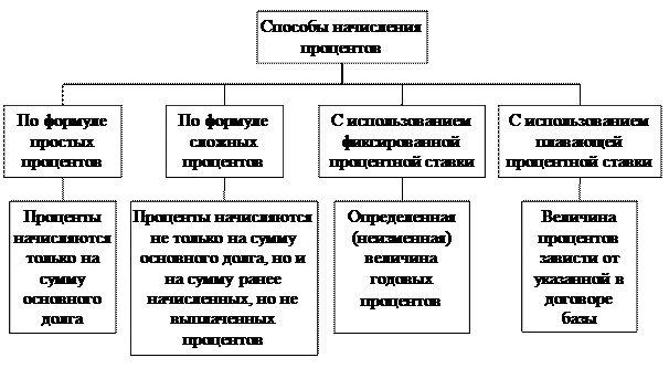 Способы начисления процентов по заемным средствам приведены на рис. 14.4.