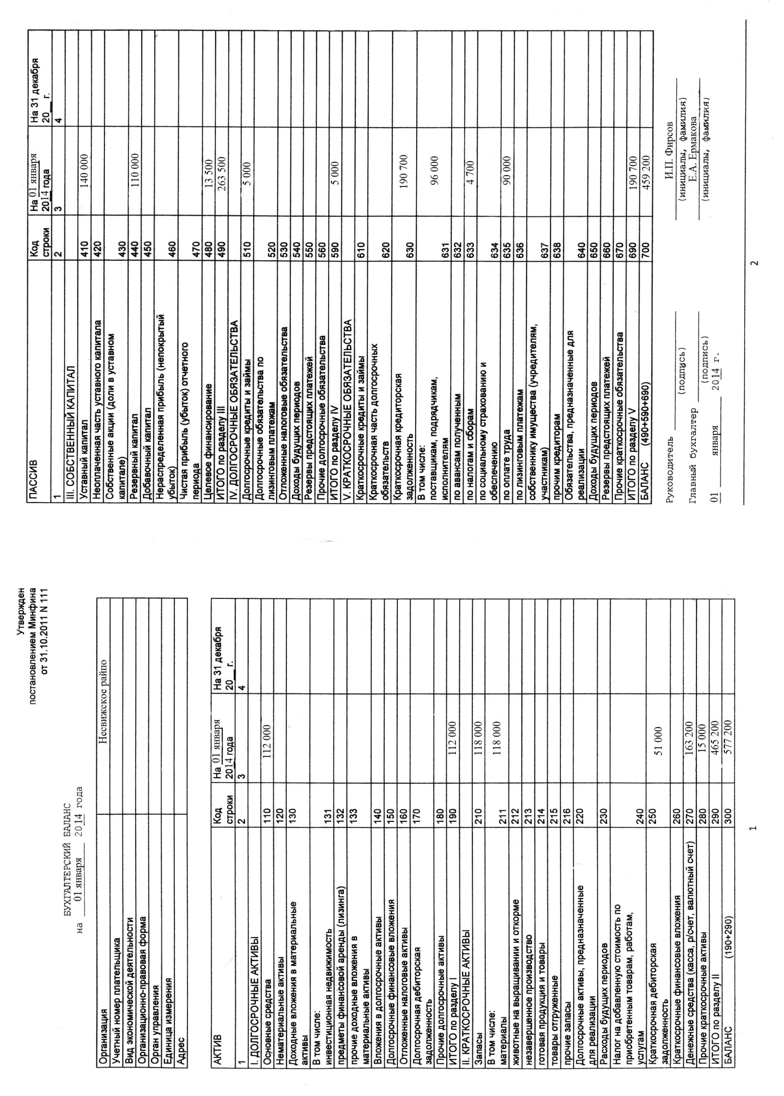| № п/п | Наименование статей баланса | Сумма млн. руб. |