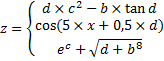 If d=6 then z=cos(5*x+0,5*d) else z=exp(c)+sqr(d+b^8)