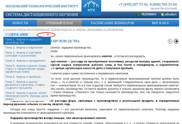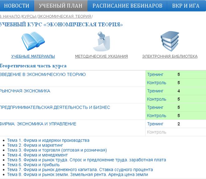 3.3.2. Изучение дисциплины начинается с входа по активной ссылке название первого модуля. Пример: «Введение в экономическую теорию» (рис. 6).