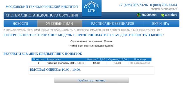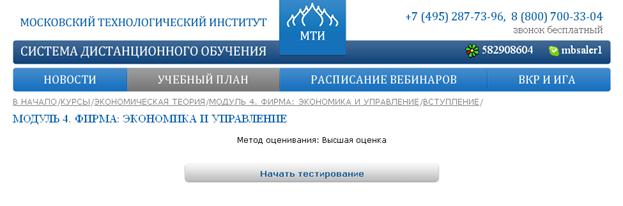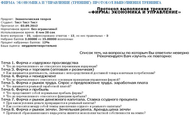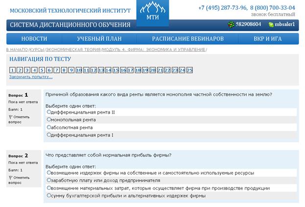 Рис.11 Пример теста по курсу «Экономическая теория»