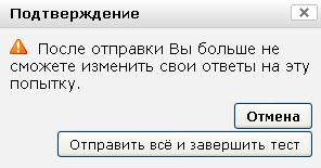 3.7.4. После ответа на последний вопрос Итогового тестирования и нажатия на кнопку «Отправить все и завершить тест» появляется информационное окно: