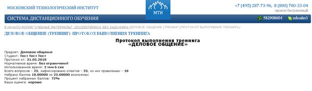 Рис. 19. Пример протокола прохождения итогового тестирования.