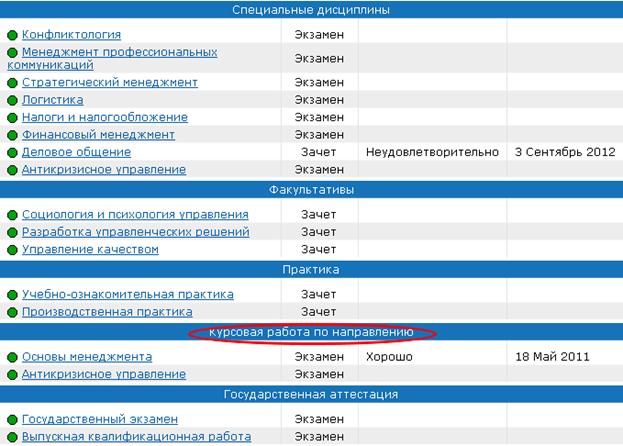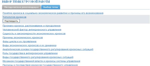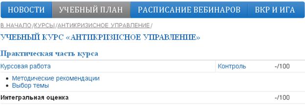 3.9.1. В личном кабинете студента находятся курсовые работы, предусмотренные учебным планом студента (рис. 23),