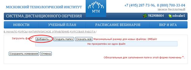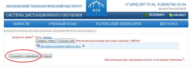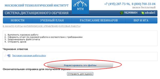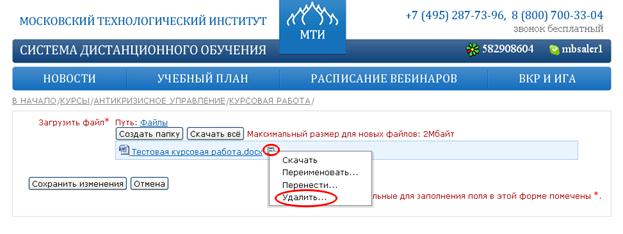 3.9.2. При нажатие на курс «Курсовая работа» (рис. 24) Вы можете: