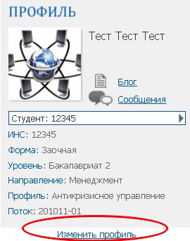 4.1. Для редактирования учетной записи перейдите по активной ссылке, в поле «Профиль», Изменить профиль рис. 39,