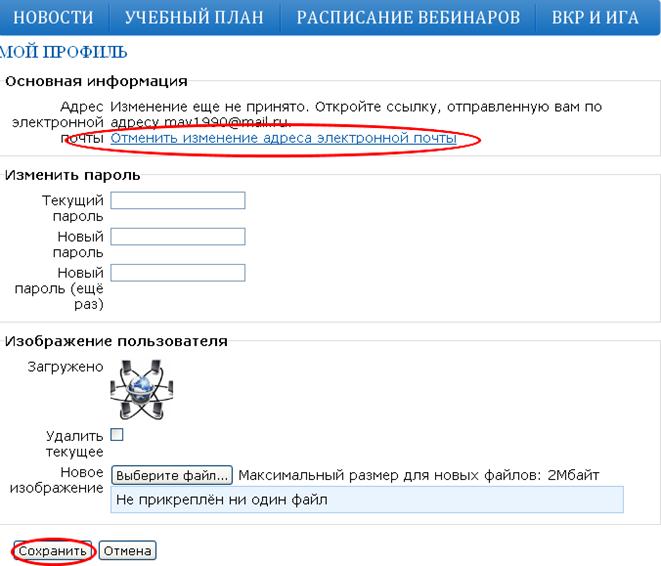 2) отменить изменения электронного почты если Вы ее не верно указали, для этого Вам нужно перейти по активной ссылке «Отменить изменение адреса электронной почты» и «Сохранить» (рис. 42).