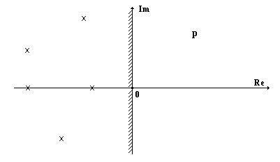 Рис. 1.1. Расположение корней характеристического уравнения на комплексной плоскости.