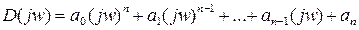 Подставим в характеристический полином вместо переменного p чисто мнимый корень, который в дальнейшем будем обозначать jw. Тогда получим функцию комплексного переменного