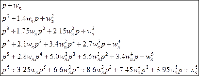 Таблица 3.1. Коэффициенты характеристического полинома замкнутой системы, оптимальные по критерию ИВМО.