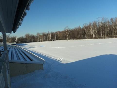 Главным спортивным сооружением базы является игровое поле, вдоль которого сооружены из легких металлических конструкций и пластика трибуны для зрителей в количестве 2,5 тысячи мест.
