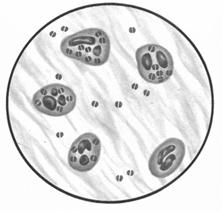 4. Изучение незавершенного фагоцитоз гонококка (микроскопия демонстрационного микропрепарата, приготовленного из гнойного отделяемого уретры больного гонореей – рис. 14). Незавершенный фагоцитоз – это состояние, когда лейкоциты не в состоянии уничтожить и переварить захваченные микроорганизмы.