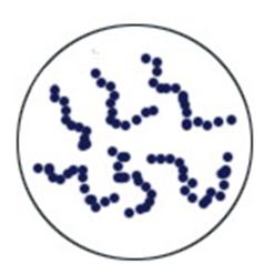 | Рис. 8. Esherichia coli. Окраска по Граму. Гр(-) | Рис.9. Streptococcus pyogenes Окраска по Граму. Гр(+) |