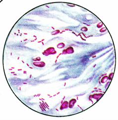 | Рис. 12. Окраска по Граму. Грамотрицательные палочки, грамположительные стафилококки |