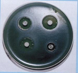 | Рис. 29. Проба на чувствительность микробов к антибиотикам (метод бумажных дисков) | Рис. 30. Е-тест на чувствительность микробов к антибиотикам |